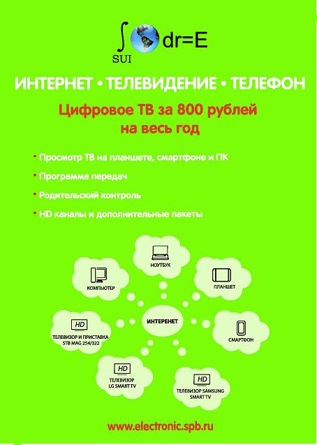 01.10.2015 Компания Электроник начинает вещание пакетов НТВ+. Подробности в разделе телевещание.